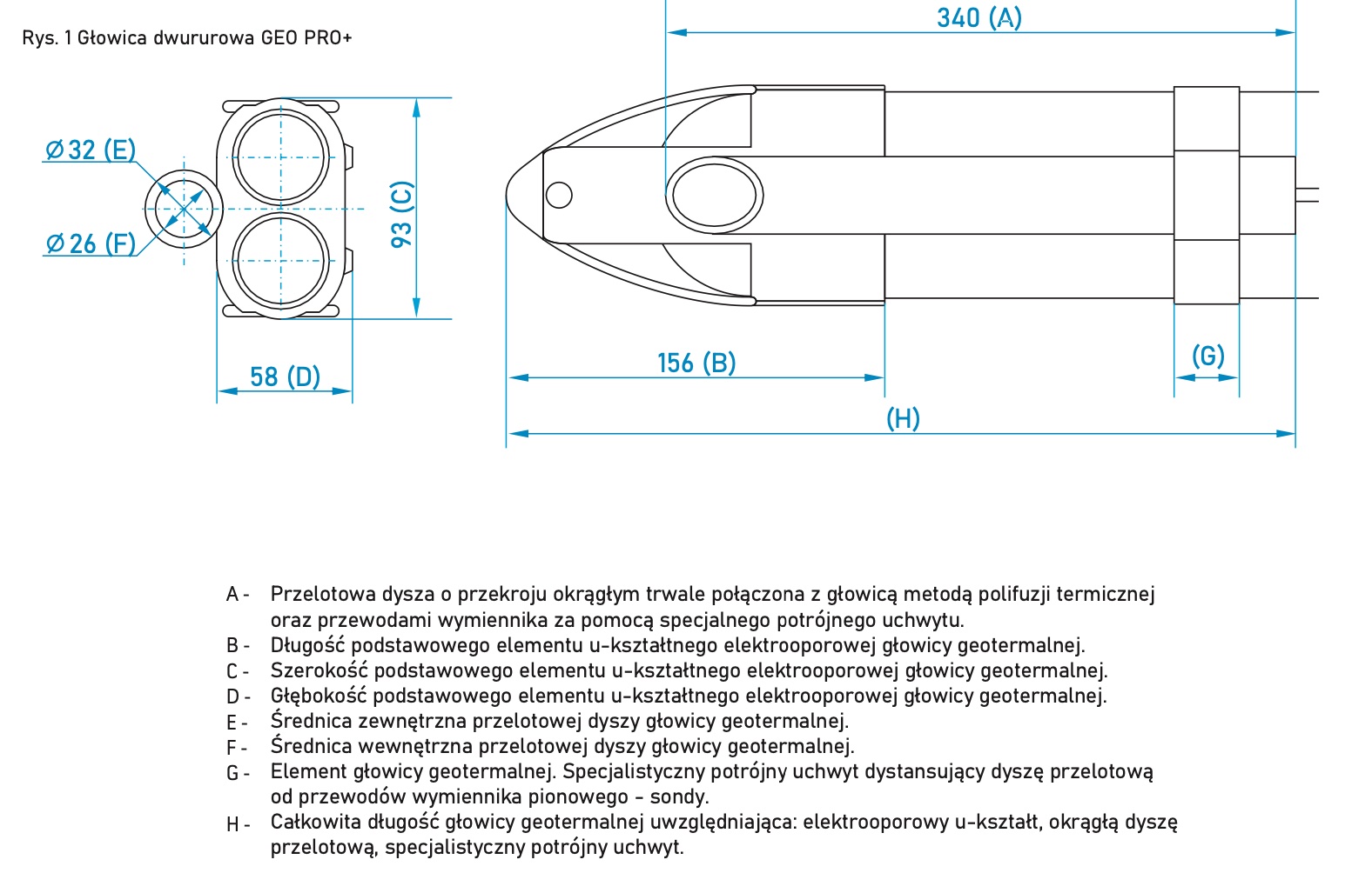 Głowica zaprojektowana została tak, aby zoptymalizować proces instalacji. U-kształtna, zawiera m.in. osłony płozowe, przelotową dyszę iniekcyjną, uchwyt typu Triak czy otwór pod obciążnik. Kształt głowicy wyklucza „efekt tłoka” podczas aplikacji sondy oraz ułatwia usuwanie urobku.